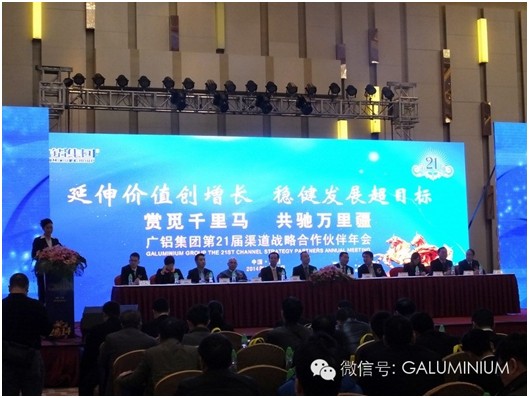 2014年3月9日至11日,廣鋁集團于廣州南豐朗豪酒店隆重舉辦了“廣鋁集團第二十一屆渠道戰略合作伙伴年會(huì )”。此次年會(huì )以“賞覓千里馬·共馳萬(wàn)里疆”為主題,攜手廣大戰略合作伙伴共同探討企業(yè)經(jīng)營(yíng)與管理之道。