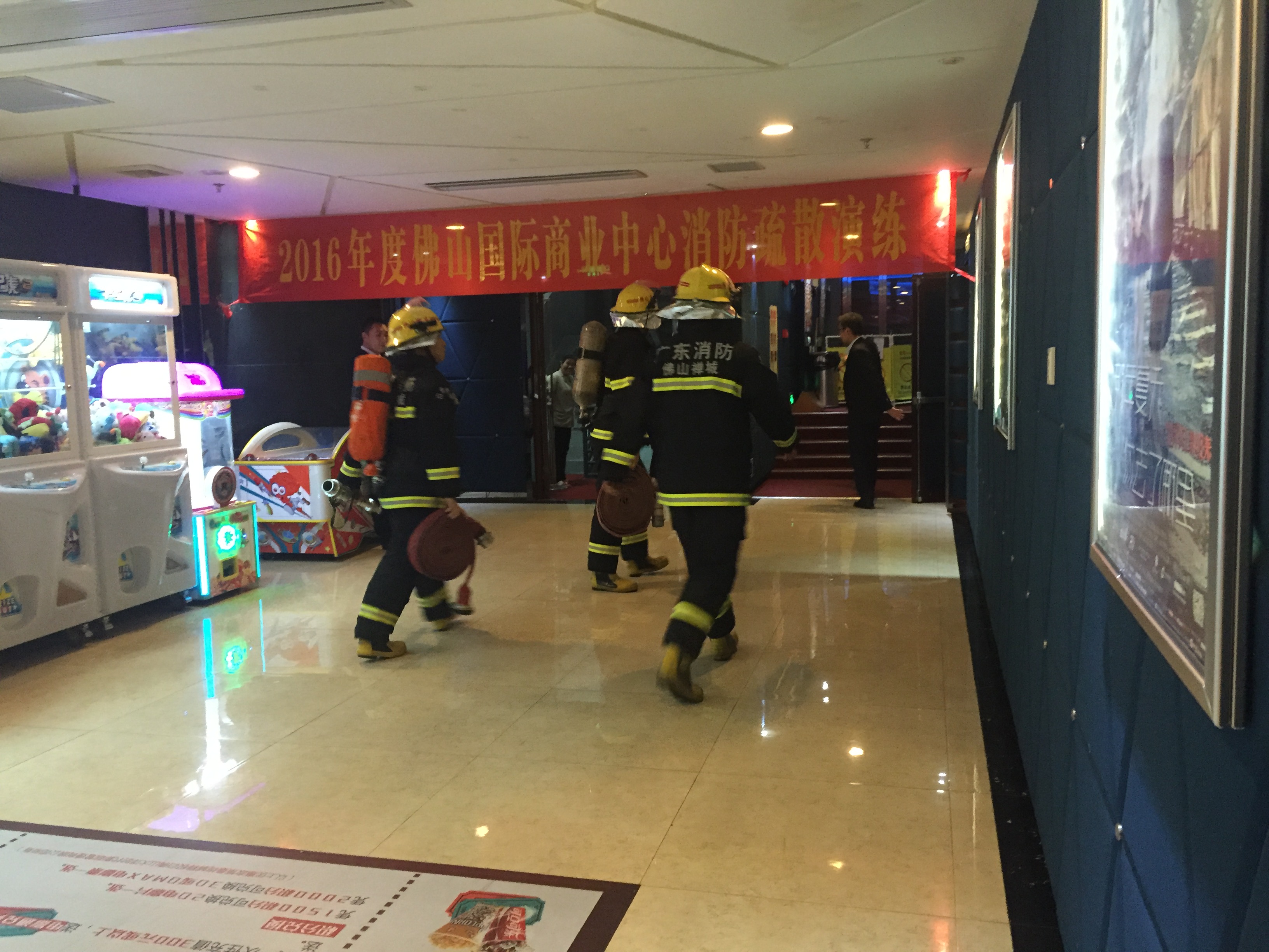 本次演練模擬了在ICC國際商業(yè)中心4層大洋時(shí)代影院4號廳發(fā)生突發(fā)性火災的應急處置程序。下午15:00時(shí),消防控制中心啟動(dòng)消防廣播與消防警鈴,疏散組2分鐘內把影院顧客安全有序的從消防樓梯疏散到首層廣場(chǎng)。滅火組與搶救組隊員迅速趕到現場(chǎng),禪城消防中隊也在接到報警后3分鐘到達現場(chǎng)開(kāi)展滅火救援。