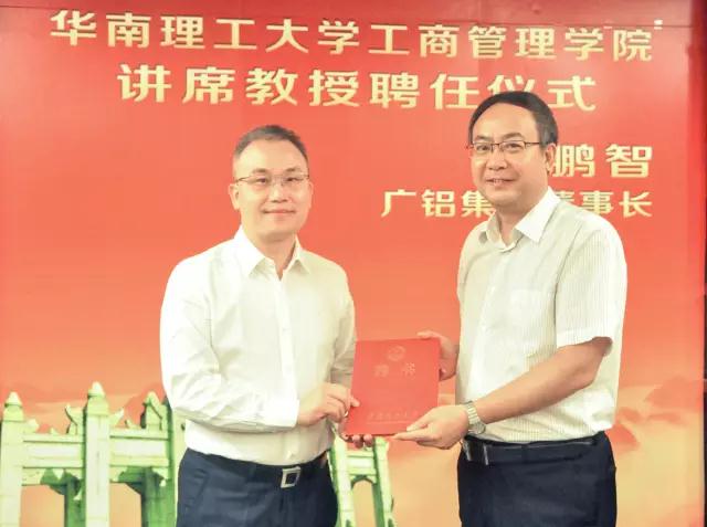 6月19日下午,在華南理工大學(xué)12號樓舉行了一場(chǎng)簡(jiǎn)單而隆重的聘任儀式,正式聘任廣鋁集團葉鵬智董事長(cháng)為華南理工大學(xué)工商管理學(xué)院講席教授。