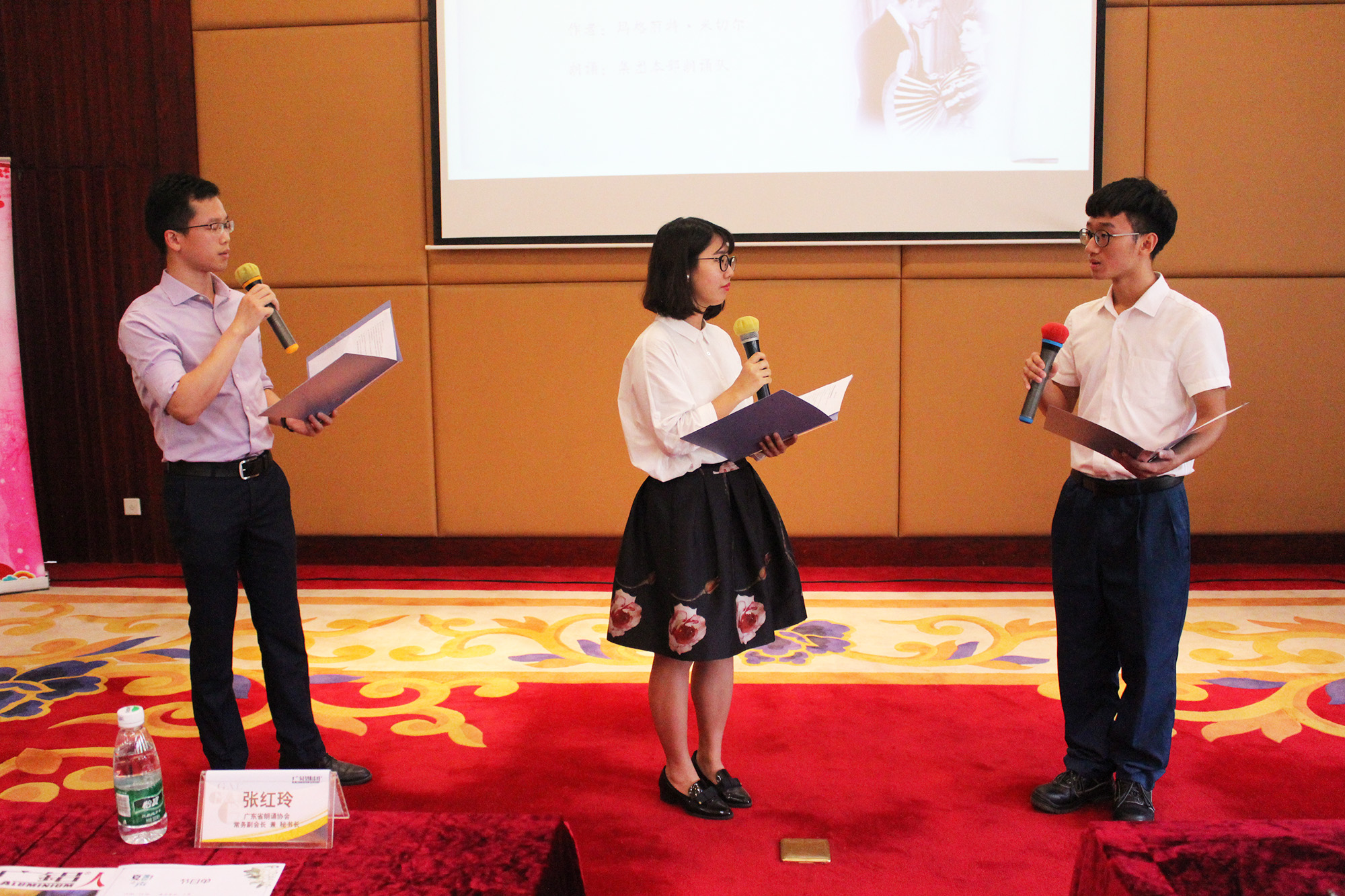 我們誠摯邀請到廣東省朗誦協(xié)會(huì )的張紅玲副會(huì )長(cháng)兼秘書(shū)長(cháng)、曾玉婷常務(wù)理事、田奉麗藝術(shù)顧問(wèn)、王秀榮女士親臨現場(chǎng),其中三位老師還現場(chǎng)為大家表演了一段朗誦,聲調抑揚頓挫,整個(gè)表演引人入勝,不少觀(guān)眾聽(tīng)后直呼“走心了”。