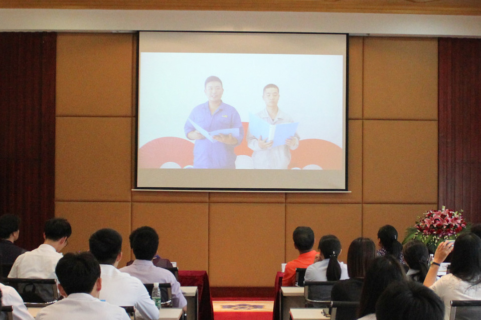 員工現場(chǎng)拆開(kāi)朗誦卡片
