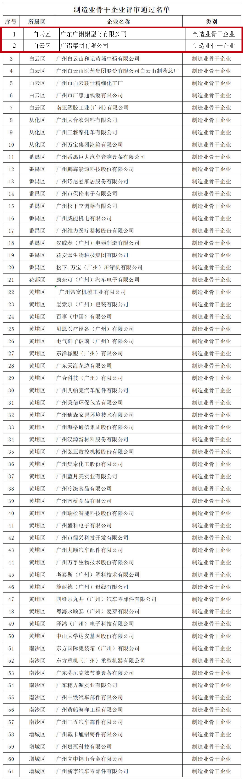 • 熱烈慶祝!廣鋁入庫廣州市工信委“三個(gè)一批”企業(yè)