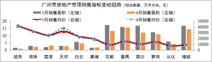 住宅銷(xiāo)售市場(chǎng)企穩回升。網(wǎng)簽數據:5月份廣州市住宅銷(xiāo)售套數為8735套,環(huán)比增長(cháng)17.2%;銷(xiāo)售面積為102.37萬(wàn)平方,環(huán)比增長(cháng)22.3%;銷(xiāo)售均價(jià)為14232元/平方,環(huán)比小幅下降2.1%。