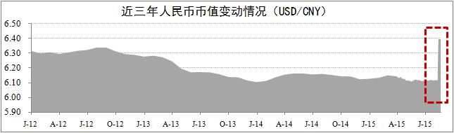 發(fā)稿時(shí)間:2015-08-24人民幣技術(shù)性貶值。央行于8月11日調整人民幣匯率中間價(jià)報價(jià)機制。截至8月20日,美元兌人民幣匯率上升至6.4,為近三年來(lái)的高點(diǎn),人民幣出現貶值現象。其中,較8月10日貶值4.6%,較8月11日貶值2.7%。此次人民幣貶值屬于技術(shù)操作層面問(wèn)題,主要目的在于消除人民幣中間價(jià)與市場(chǎng)匯率之間的偏差,為應對9月份美聯(lián)儲加息造成的系統性貶值做好準備。