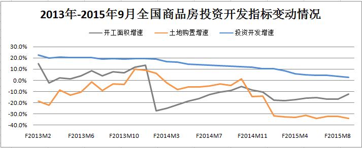 國家統計局數據顯示,9月份全國商品房土地購置面積累計同比降幅為33.8%,環(huán)比擴大了1.7個(gè)百分點(diǎn);新開(kāi)工面積累計同比降幅為12.6%,環(huán)比收窄了4.2個(gè)百分點(diǎn);投資開(kāi)發(fā)額累計同比增長(cháng)2.6%,環(huán)比收窄了0.9個(gè)百分點(diǎn)。受土地購置面積降幅擴大的影響,9月份國房景氣指數下跌至93.40,環(huán)比輕微下滑了0.06個(gè)點(diǎn)。