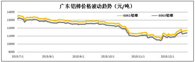 鋁棒價(jià)格降幅放緩。截至12月21日,鋁棒價(jià)格普遍上漲至10月份均價(jià)水平。其中,廣東省6061型鋁棒價(jià)格上浮至11705元/噸,月化環(huán)比上漲2.8%。6063棒價(jià)格上浮至11,405元/噸,月化環(huán)比上漲2.7%。鋁棒價(jià)格上浮主要受原鋁市場(chǎng)價(jià)格上漲、鋁材下游需求恢復及鋁材出口強勁因素的影響。預計廣東6061棒的價(jià)格區間將基本穩定在12000至12500之間。