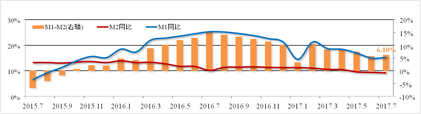 7月份M2增速為9.2%,較上月下滑0.2個(gè)百分點(diǎn),再創(chuàng )歷史新低。M1與M2 差額為6.1%,較上月擴大0.5個(gè)百分點(diǎn)。社會(huì )融資規模累計168.01萬(wàn)億元,其中 實(shí)體經(jīng)濟融資規模114.31萬(wàn)億元,同比增長(cháng)13.5%,較上月擴大0.4個(gè)百分點(diǎn)。