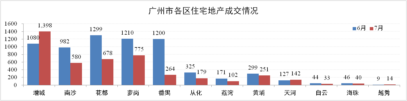 分析認為:7月全市成交價(jià)格略低于6月平均價(jià)格,部分區域出現價(jià)格波動(dòng),淡季影響價(jià)格下跌。預計在未來(lái)一段時(shí)間內,加上指導價(jià)政策的再次強調頒布,廣州市一手住宅成交均價(jià)將繼續呈現可控的回落態(tài)勢。