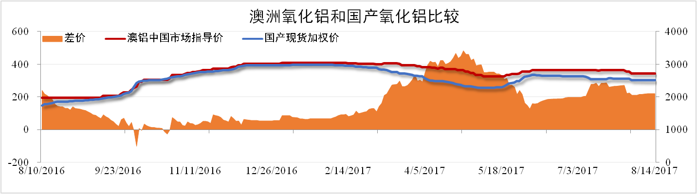 分析認為:國內氧化鋁市場(chǎng)總體供應偏緊。在澳洲氧化鋁與國產(chǎn)氧化鋁價(jià)差雖價(jià)差逐漸縮小。但國內氧化鋁價(jià)格偏弱,尤其山東地區氧化鋁開(kāi)始進(jìn)入現貨市場(chǎng);預計8月澳洲氧化鋁進(jìn)口價(jià)格小幅下跌。