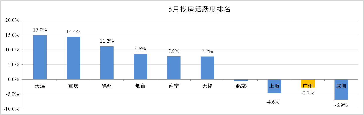 據安居客發(fā)布的數據顯示,5月全國用戶(hù)找房需求上升至62.4%。一線(xiàn)找房需求持續下跌。二線(xiàn)城市由于人才政策出臺的原因找房熱度上揚。